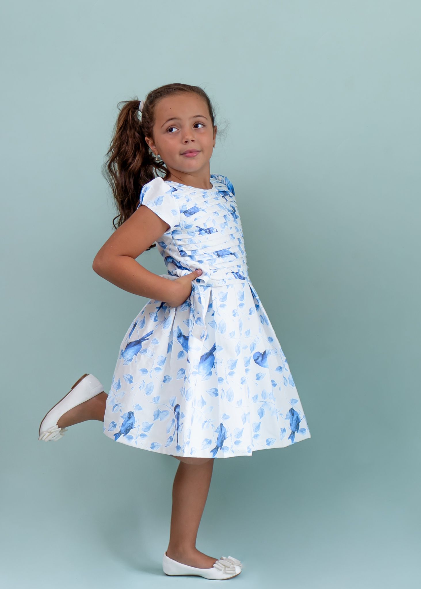 Vestido Infantil Flores e Pássaros Fundo Branco