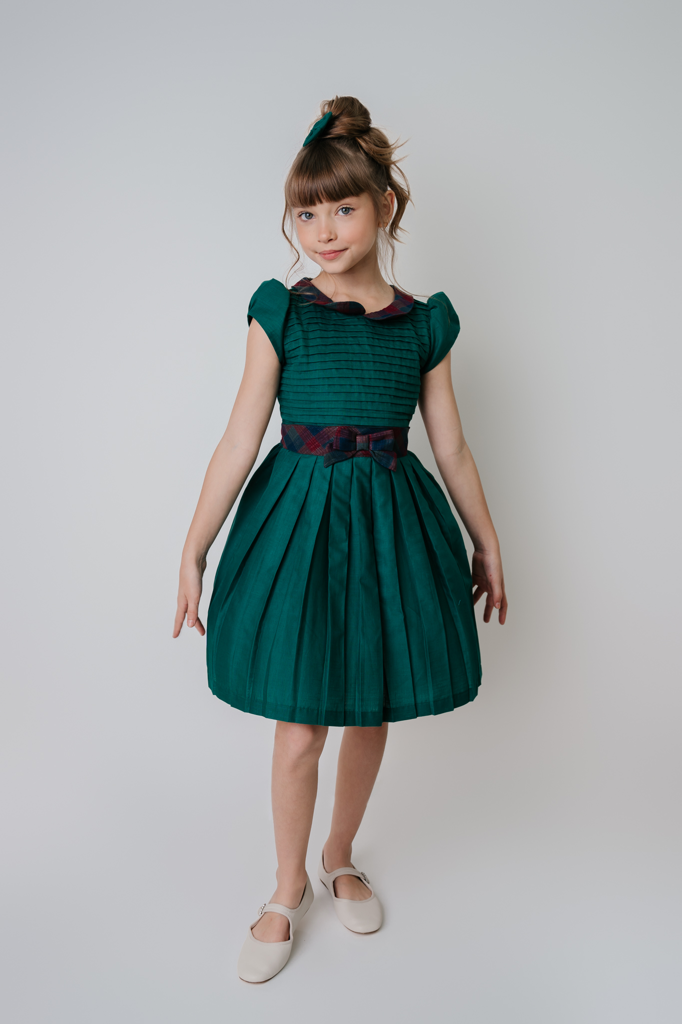 Vestido Infantil Verde com Palla e Gola Xadrez